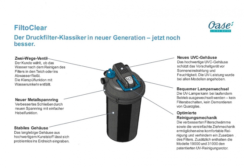 - LEISTUNGSSTARK: Alle FiltoClear Modelle der jüngsten Generation verfügen über aufgewertete, hocheffektive UV-Lampen