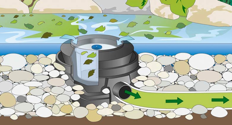 - Kraftvolles Absaugen von Teichoberflächen von 65 m² bzw. 80 m²