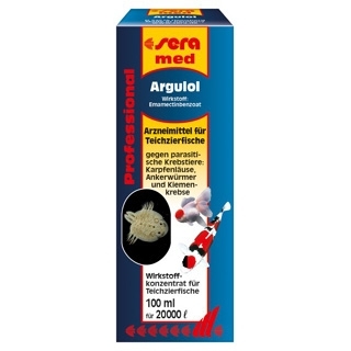 Sera Argulol ist ein neuartiges und sehr wirksames Heilmittel für Teichwasserfische zur Behandlung gegen parasitische Krebstiere: Karpfenläuse (Argulus), Ankerwürmer (Lernaea), Kiemenkrebse (Ergasilus) und parasitische Asseln.