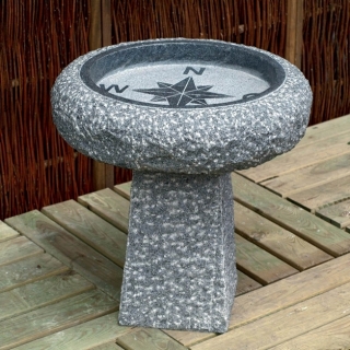 Vogeltränke Kompass rund auf Säule dgrau, d=35cm, h=35cm